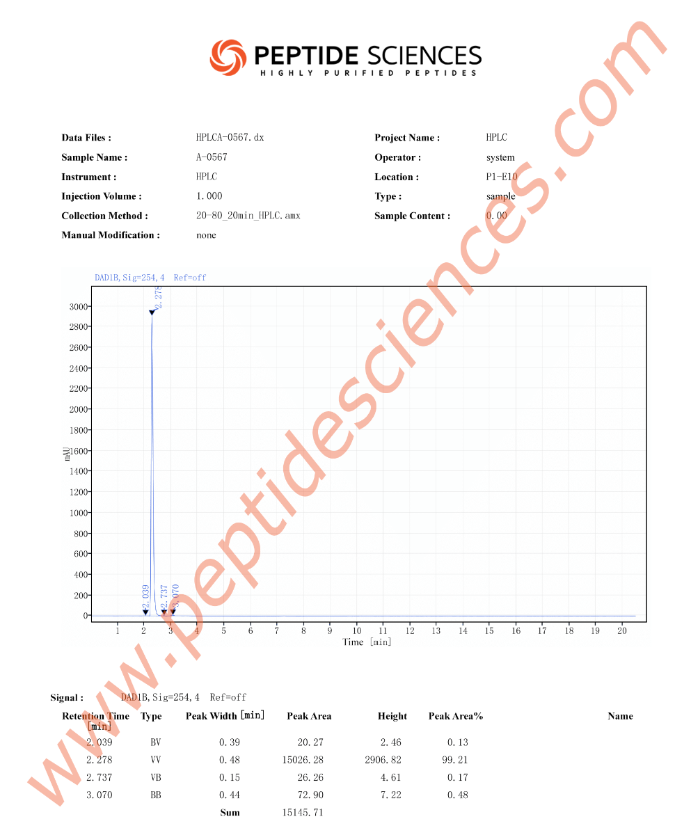 Note: All products provided by Peptide Sciences LLC are for laboratory research and development purposes only. These products are not for human use or veterinary application.