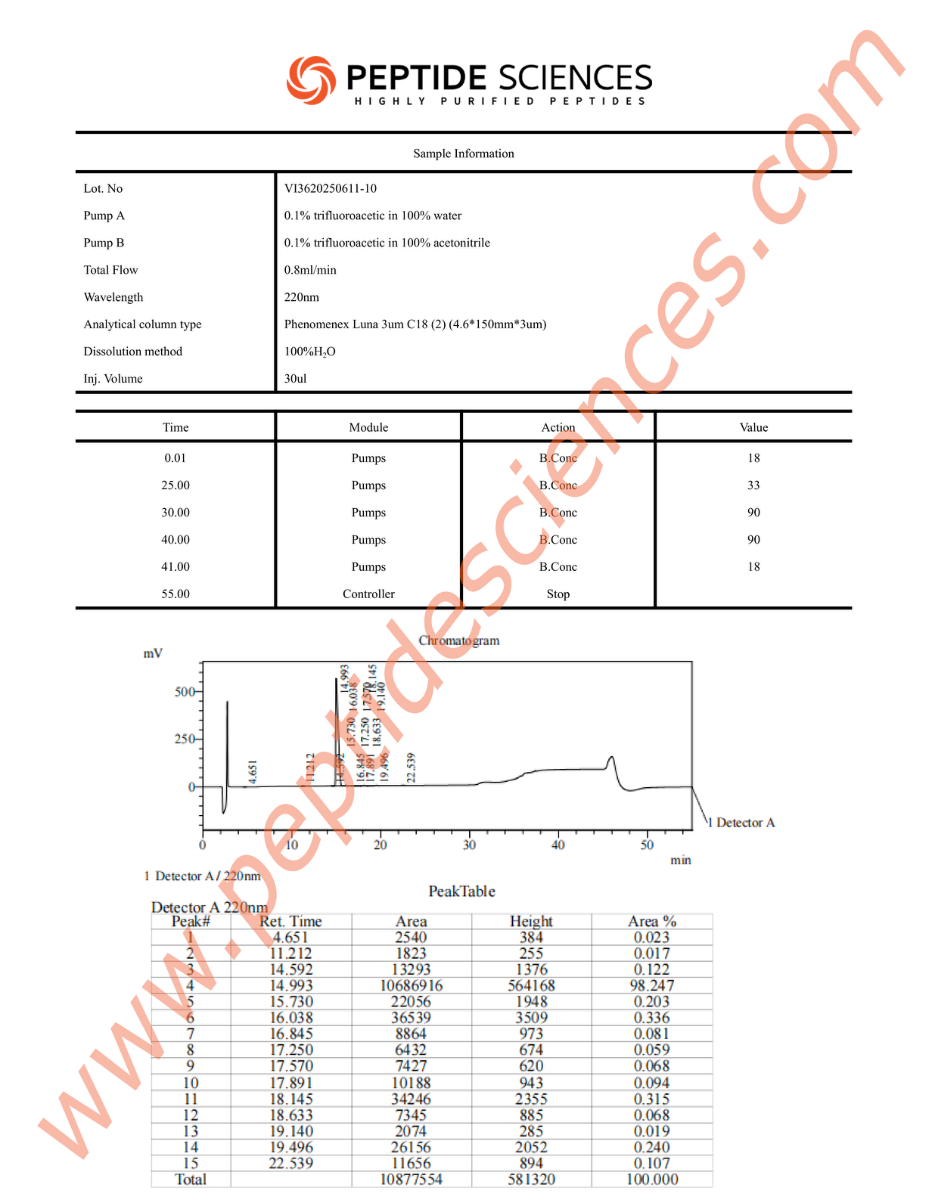 - Enhanced Data Reproducibility: Due to the 100% accurate sequential fingerprint of our peptides, researchers can expect reproducible results across multiple trial phases.