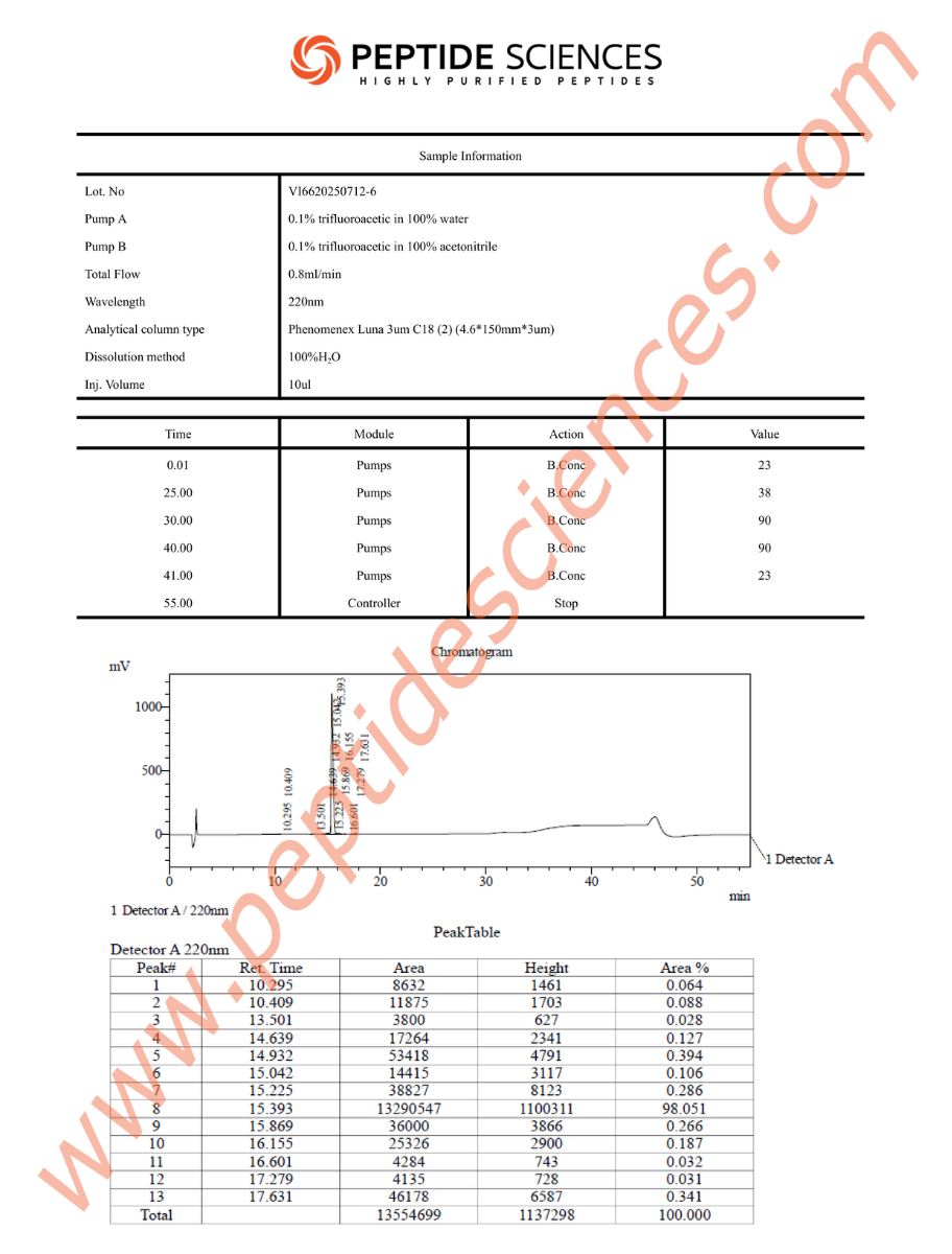 - Enhanced Data Reproducibility: Due to the 100% accurate sequential fingerprint of our peptides, researchers can expect reproducible results across multiple trial phases.