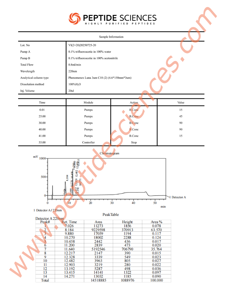 - Enhanced Data Reproducibility: Due to the 100% accurate sequential fingerprint of our peptides, researchers can expect reproducible results across multiple trial phases.