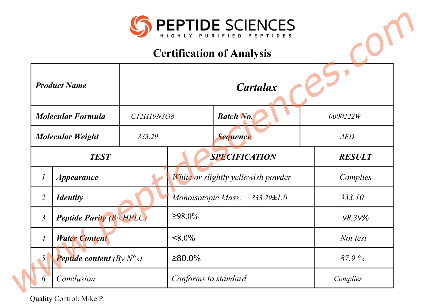 Note: Cartalax is provided for Research Use Only. It is not intended for human consumption or clinical use. Please ensure all laboratory safety protocols are followed.